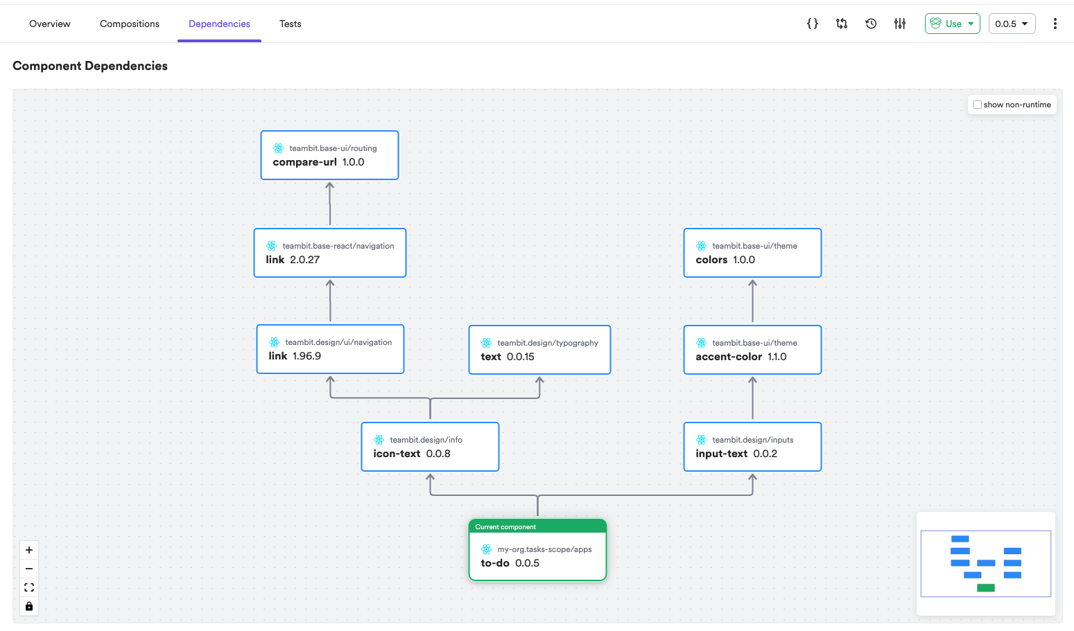 Head over to the 'Dependencies' tab in the UI (run bit start) to review your components' dependencies: