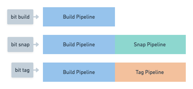 bit snap executes the basic pipeline, then it adds an additional steps for creating an immutable snapshot for the component. After the snapshot is created, a semantic version is created for that snapshot.