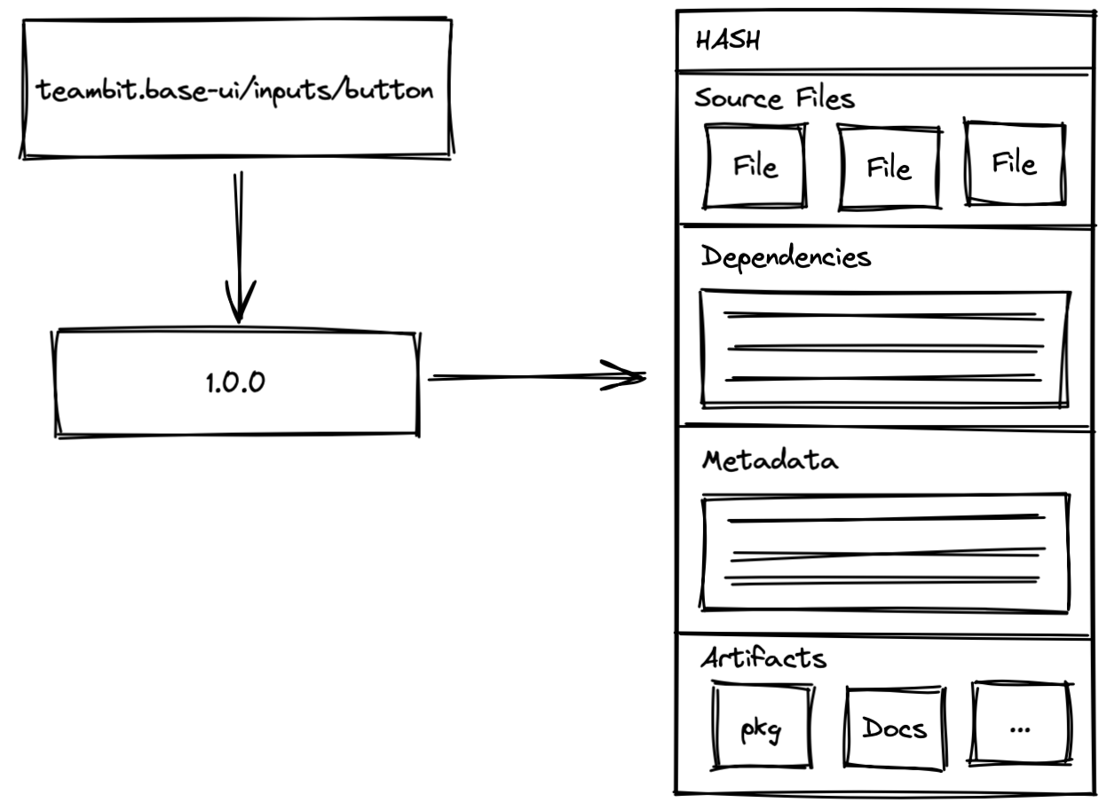 Each time you snapshot a change, Bit saves the state of the component, and points to it from the component.