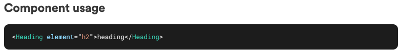 import { Heading } from './heading'; ```jsx <Heading element="h2">heading</Heading> ```